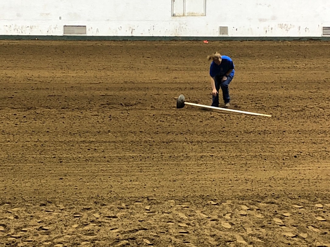 I am at a horse show… the arena has people who help out the events by assisting the judge. Basically, they pick up poles. If there are 20 kids in a class, more than half knock the poles down. It seems that all this lady did was pick up poles and line them up…. just to have the next rider knock them down again.
